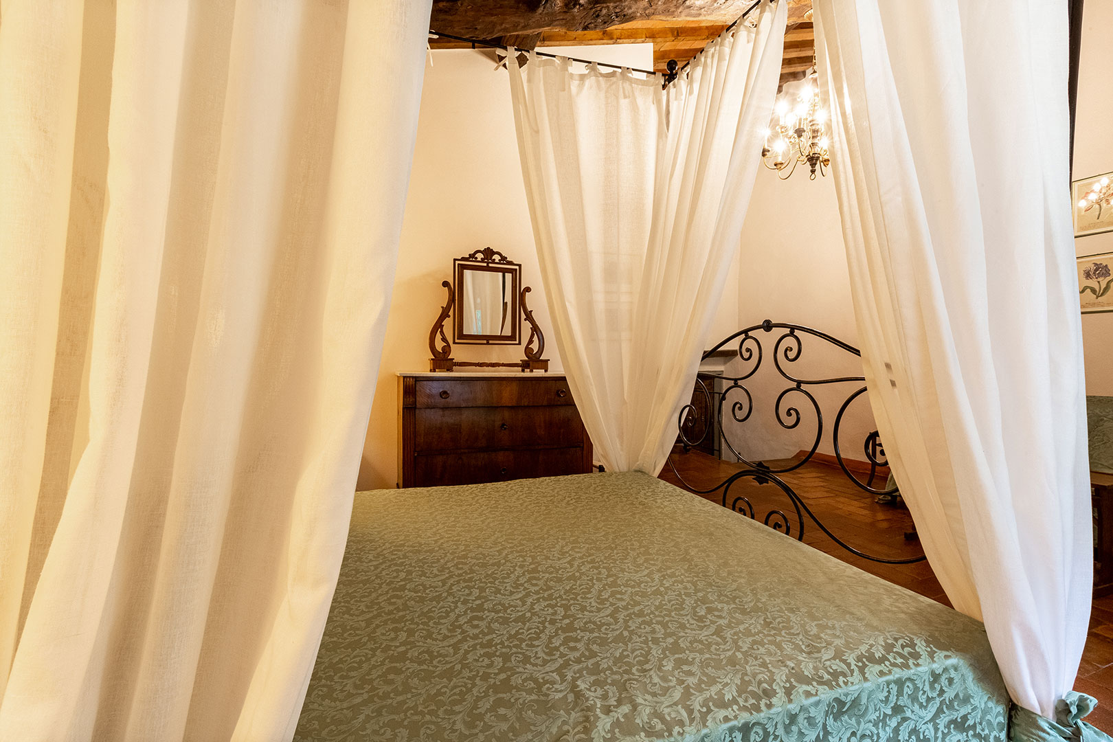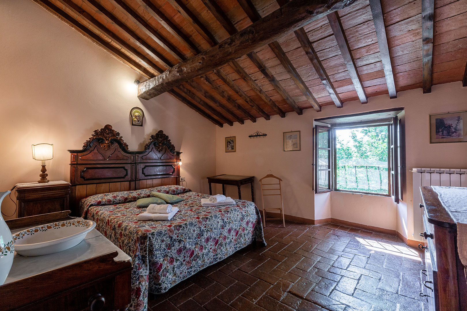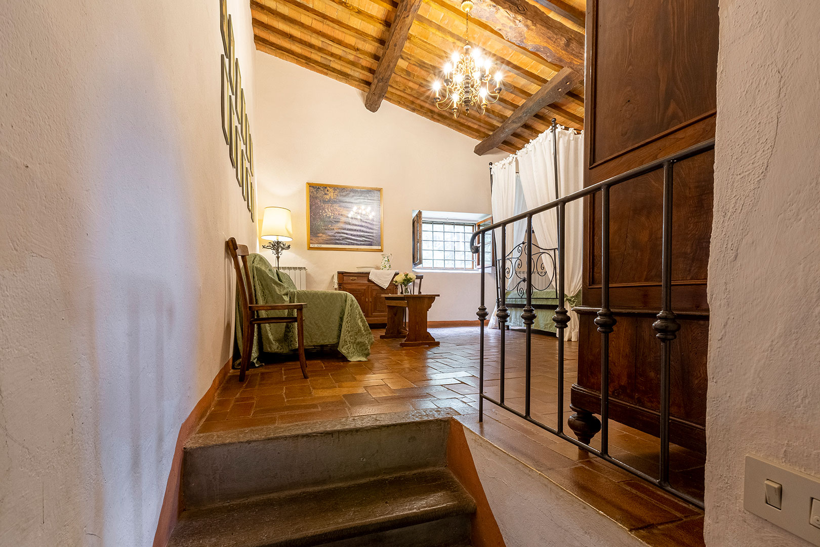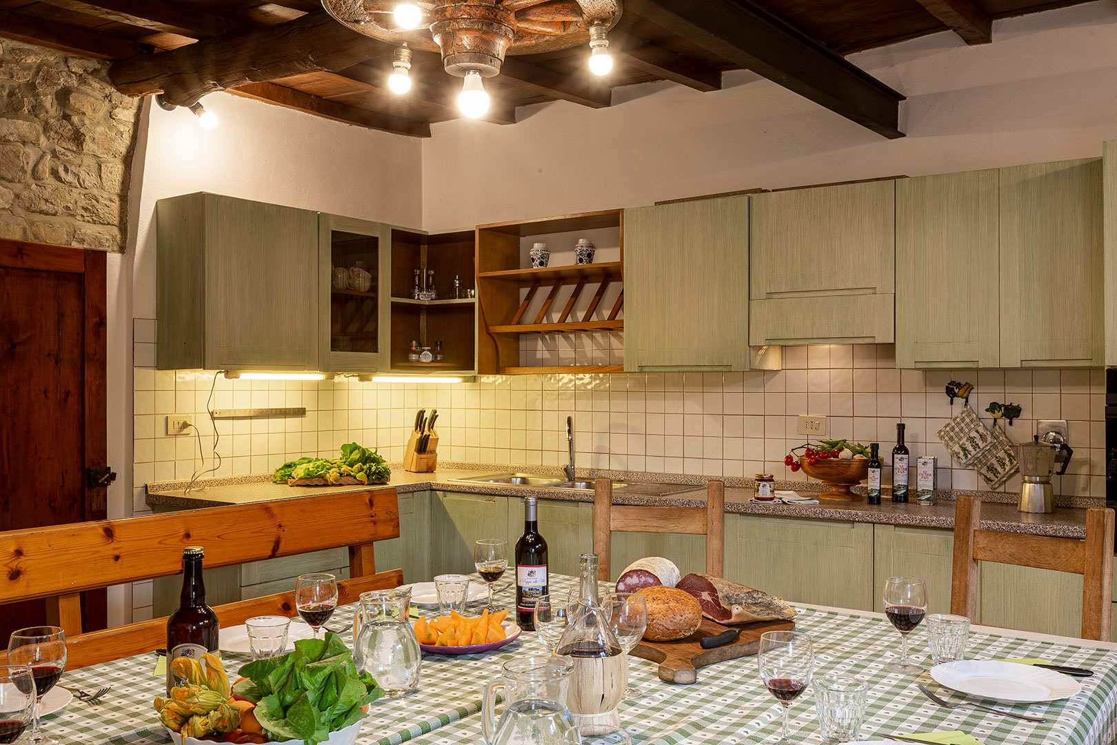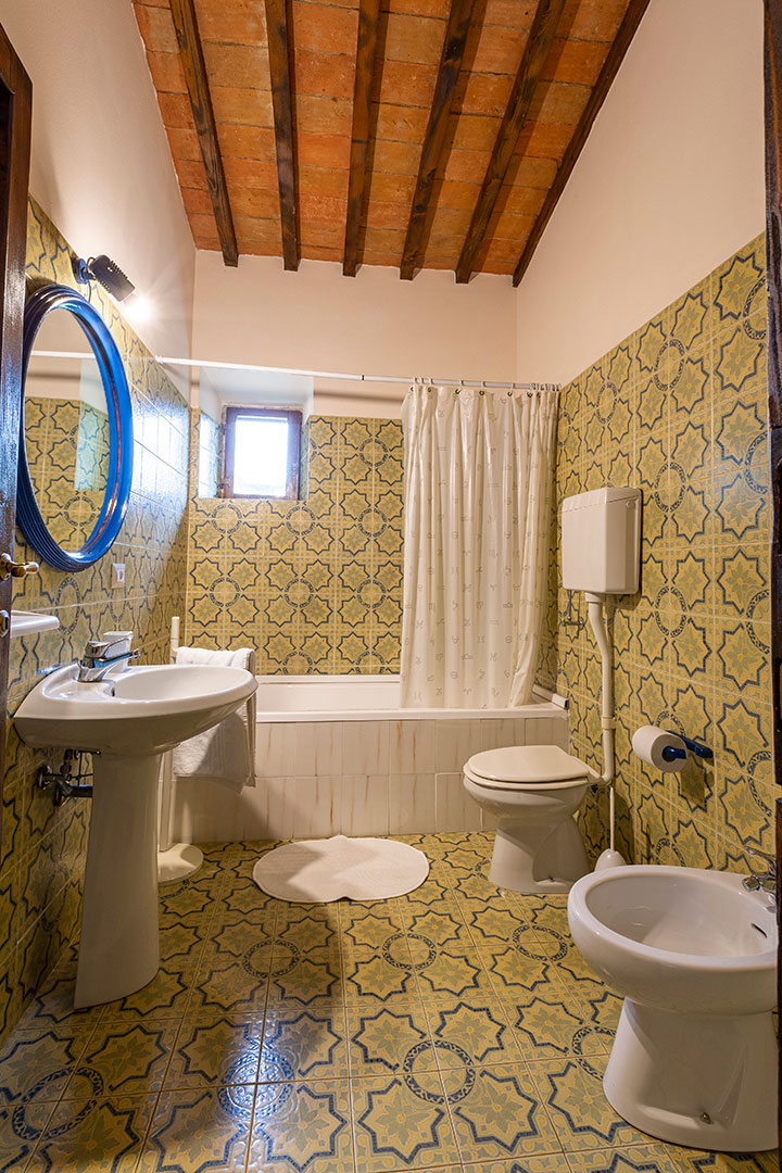 Villa Montagna è stata una casa contadina con stalle al piano terra che risale al 1629. Alla fine degli anni ’90 è stata ristrutturata per diventare una villa rustica che riporta al fascino di un tempo ormai lontano. Il giardino e la piscina, caldi e soleggiati la mattina, freschi e silenziosi la sera, offrono un panorama mozzafiato. Disposta su due piani risulta essere un’ottima location per una vacanza di gruppo con parenti o amici. Infatti, la villa può alloggiare massimo 18 ospiti distribuiti in otto camere da letto (tre delle quali con bagno proprio, con altre tre docce e wc in comune sul corridoio), un grandissimo salotto, stanza giochi, un piccolo angolo di lettura e un’ampia cucina con terrazzo sul retro. Abbiamo mantenuto, dove possibile, i pavimenti in cotto originale e in pietra serena di Firenzuola, le travi a vista e l’originale acquaio in pietra. Le camere sono arredate mantenendo lo stile antico colonico di fine ’800 – inizio ’900. Villa Montagna è un posto speciale per godere sia della bellezza unica del Mugello che della vicinanza con gli altri tesori della Toscana.
