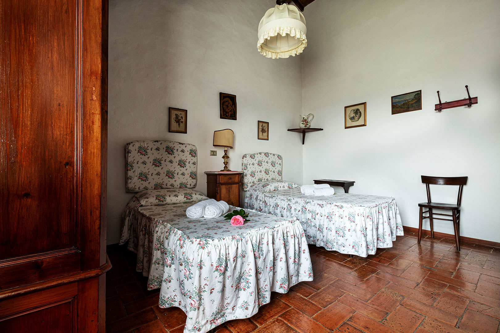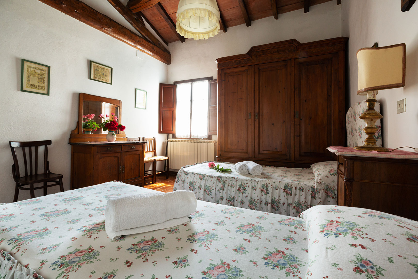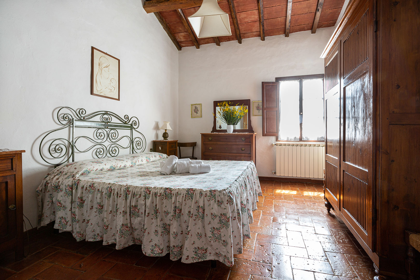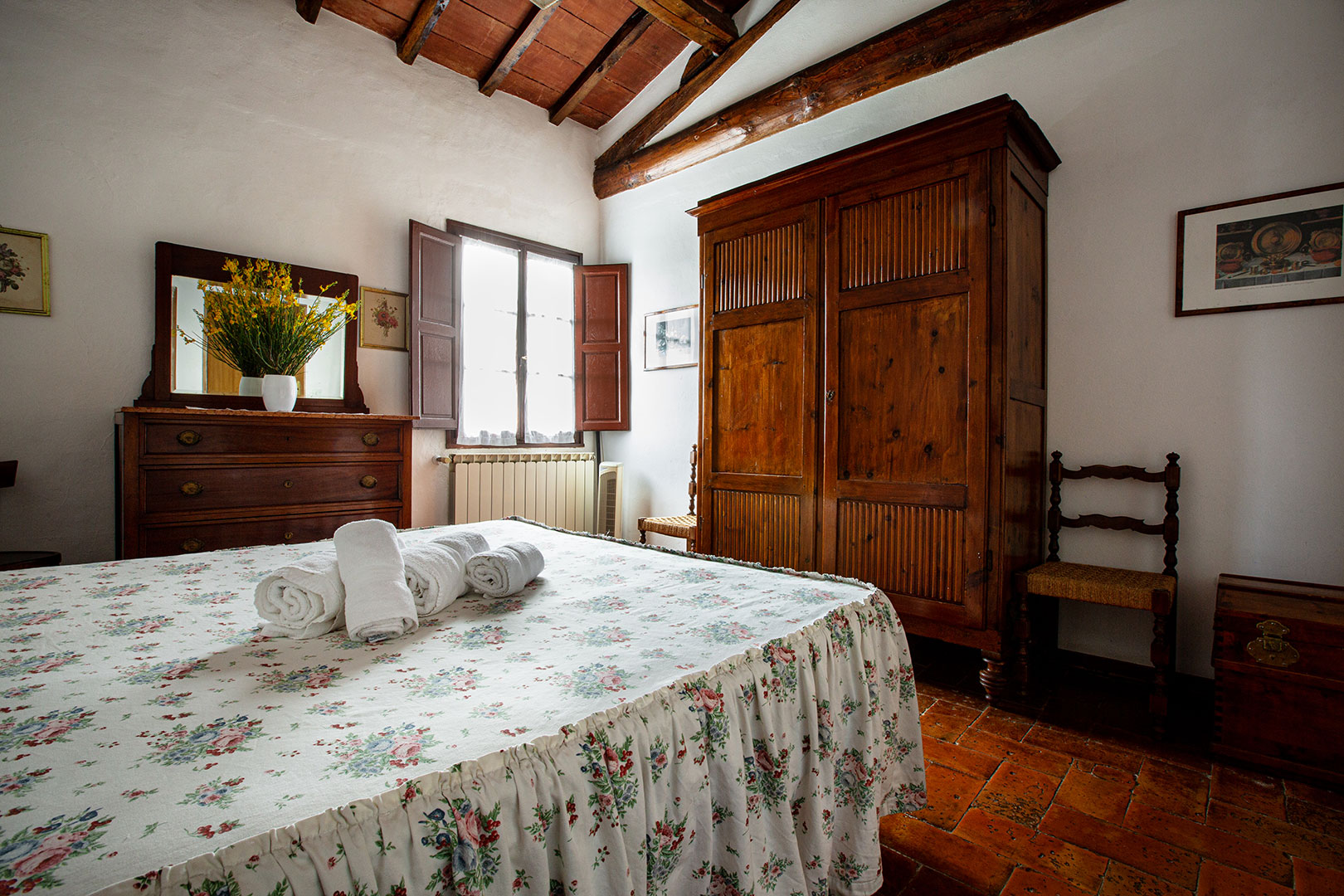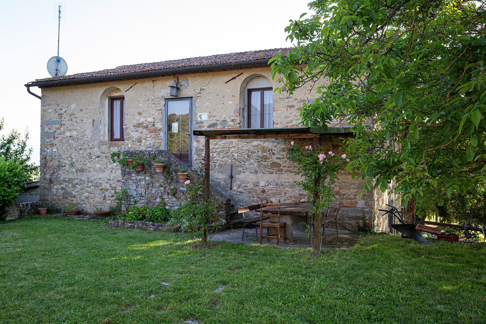 Situata sopra la vecchia tinaia, abitazione dell’ultima famiglia di contadini, i Checchi, la casa è la più spaziosa del nostro agriturismo quindi adatta ad una famiglia numerosa. Davanti gode di un grande giardino ad uso esclusivo con barbecue. Lo stile rustico toscano, curato nei dettagli, con mobili antichi di famiglia, da molto fascino alle camere.