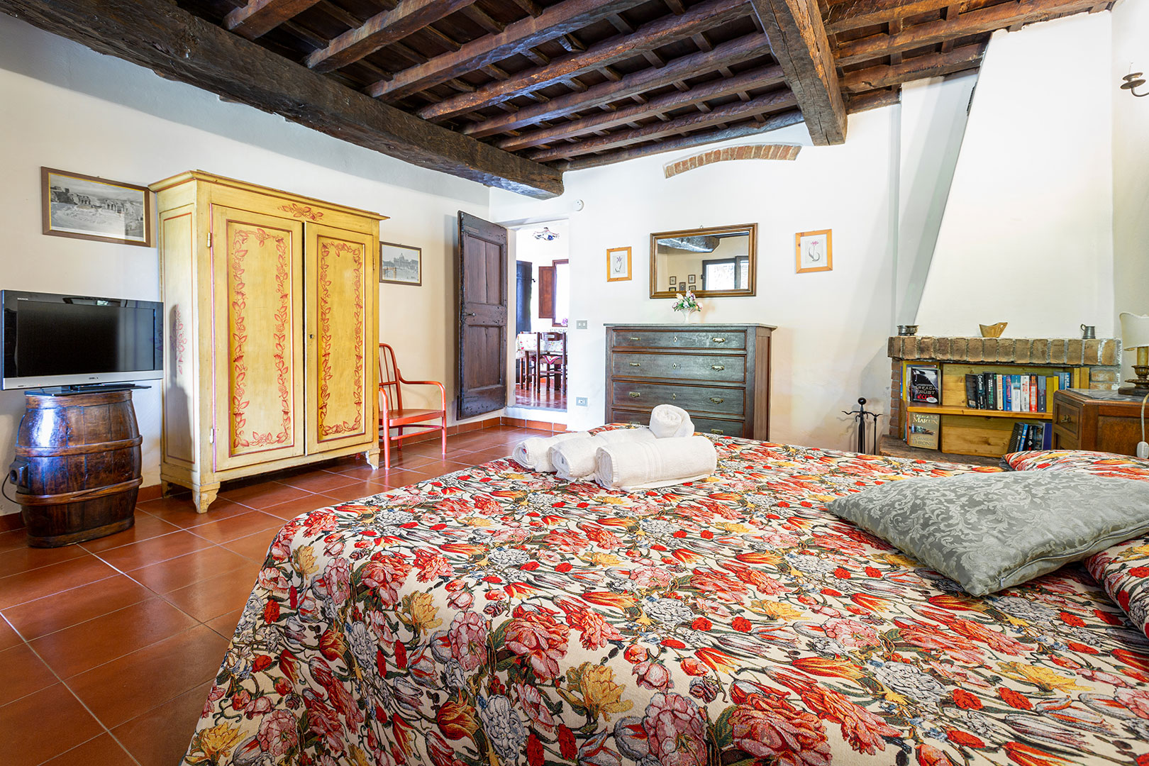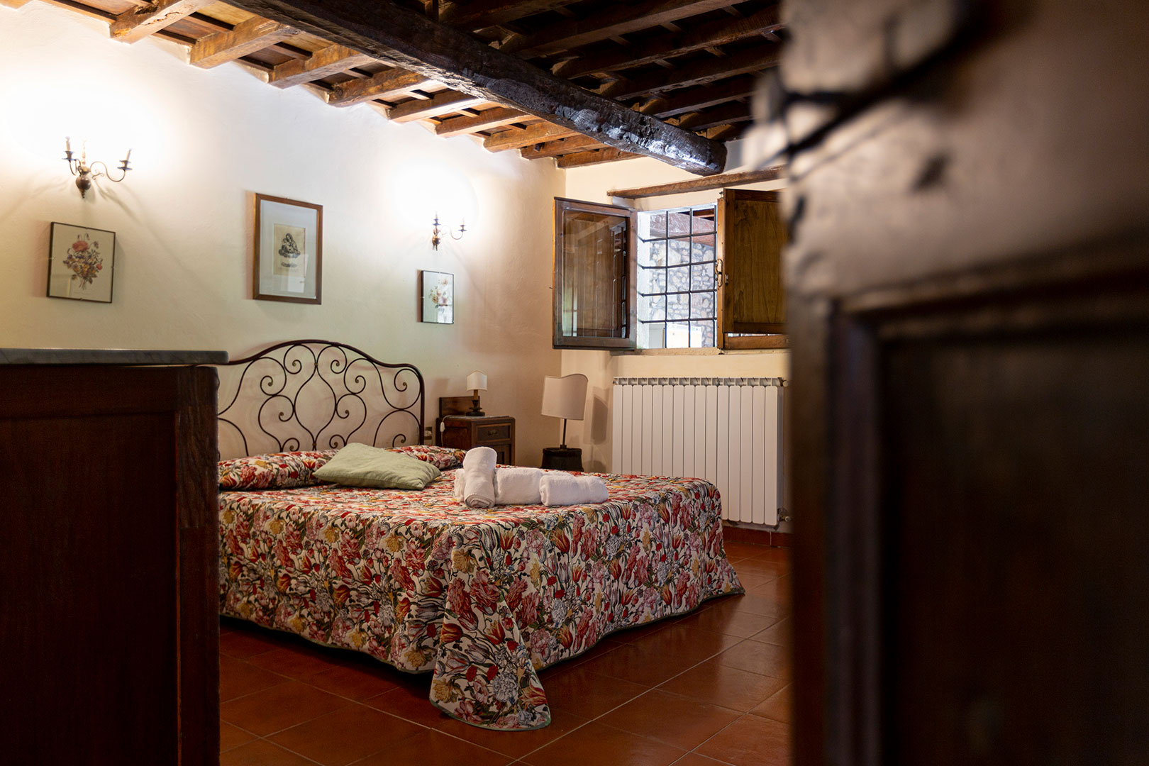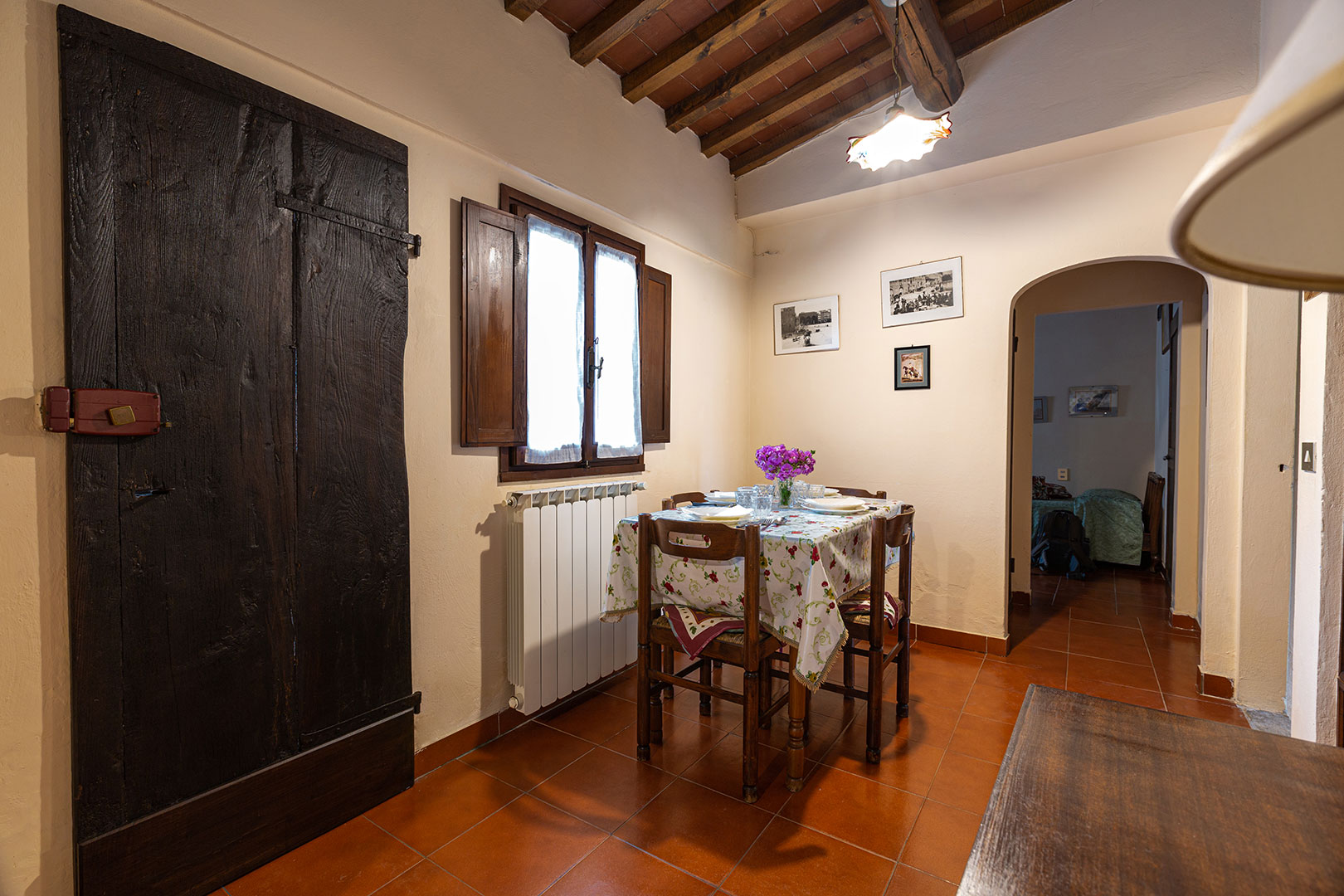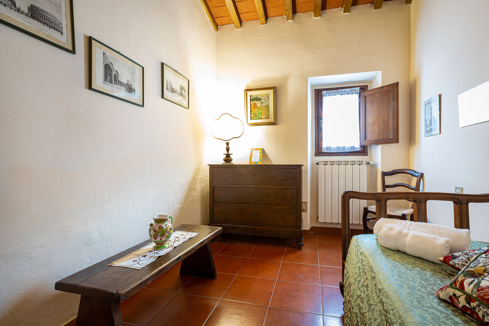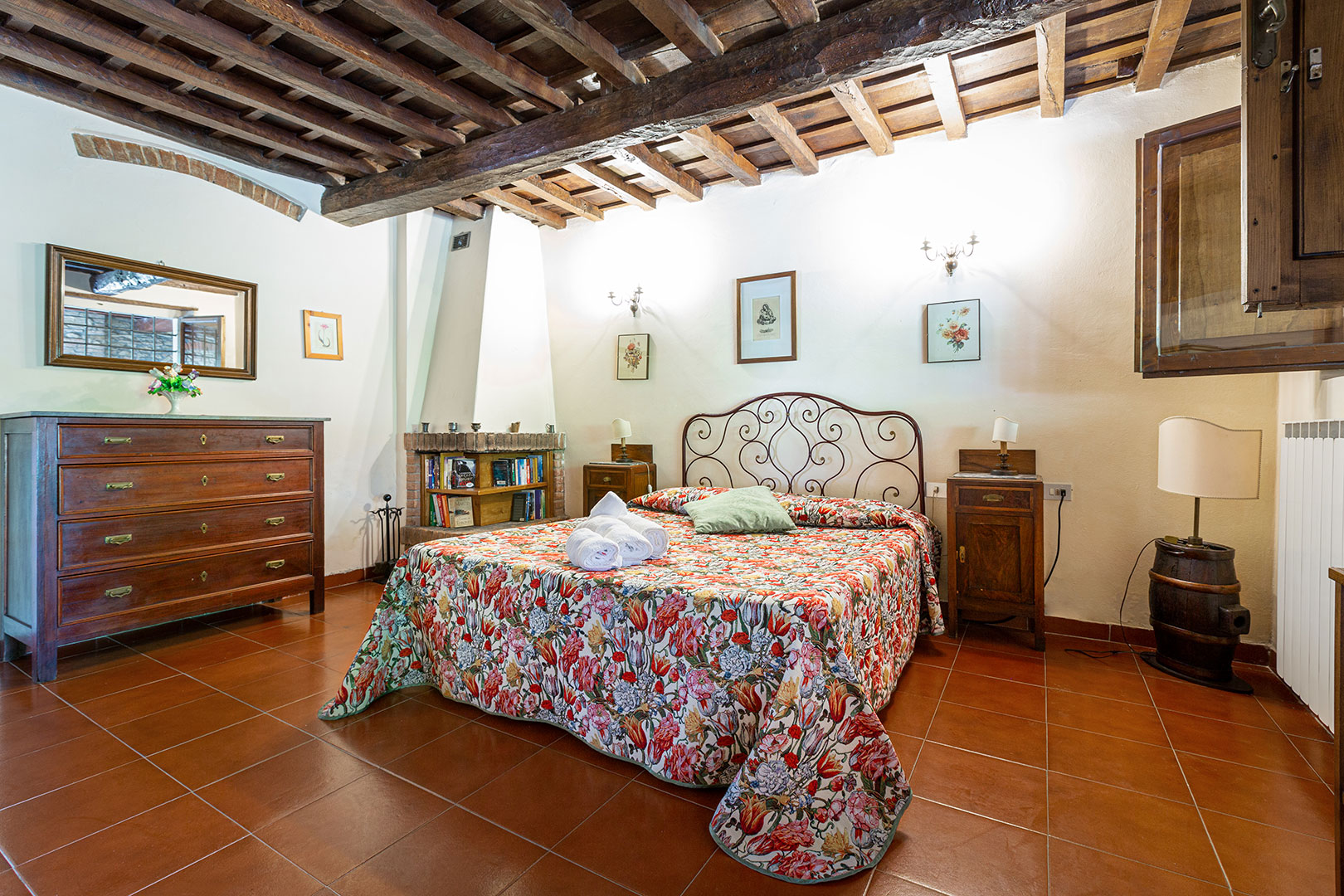 Una casa piccola, adiacente alla cappella privata, semplice e molto accogliente per una vacanza in coppia oppure con un bambino piccolo. La camera matrimoniale con camino da un tocco romantico di altri tempi durante le fresche giornate autunnali. La loggia privata, con le pietre antiche, è uno dei posti privilegiati da graziose famiglie di rondini per i loro nidi in estate.