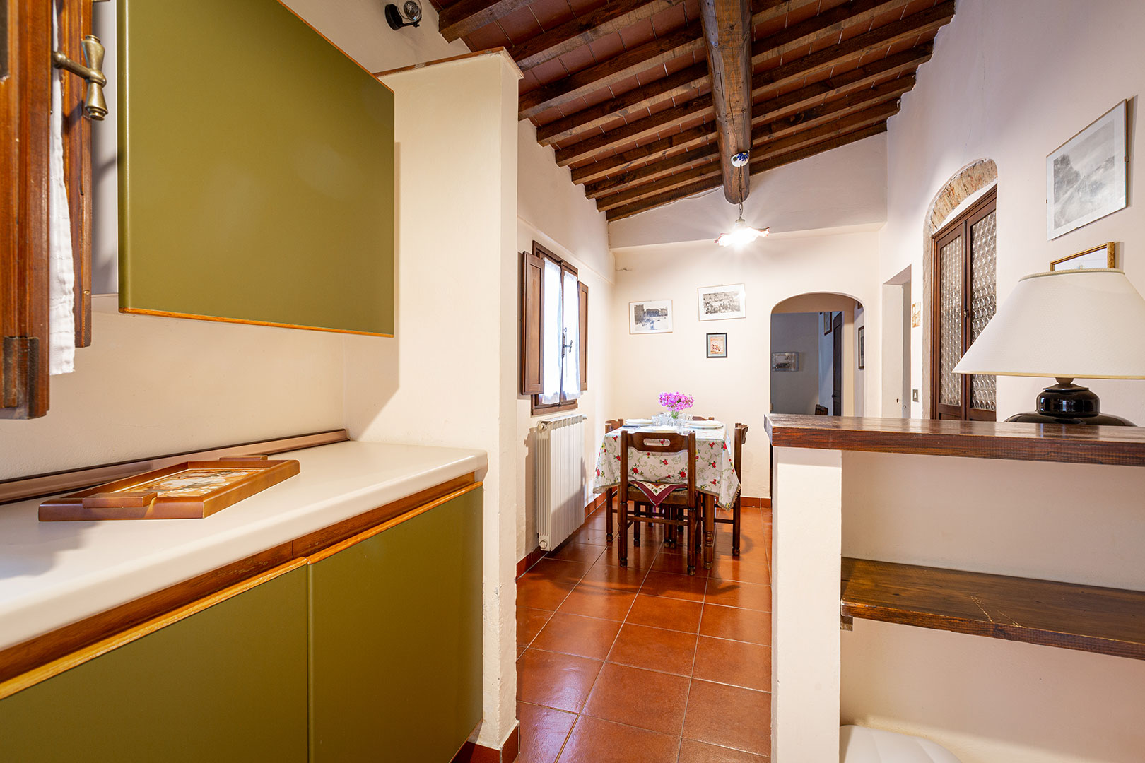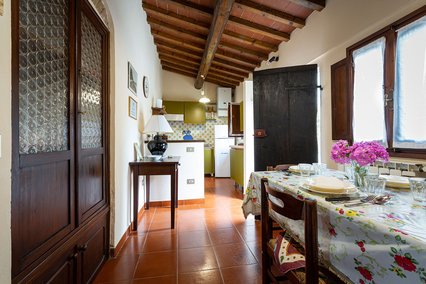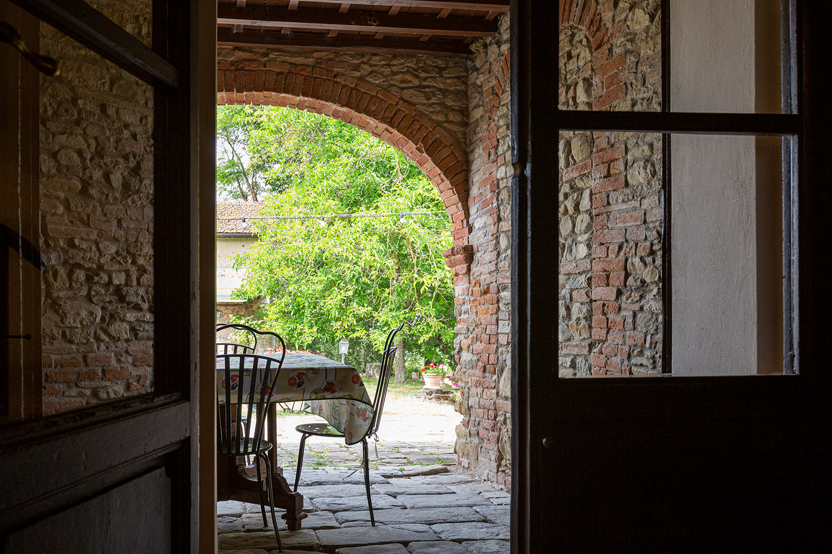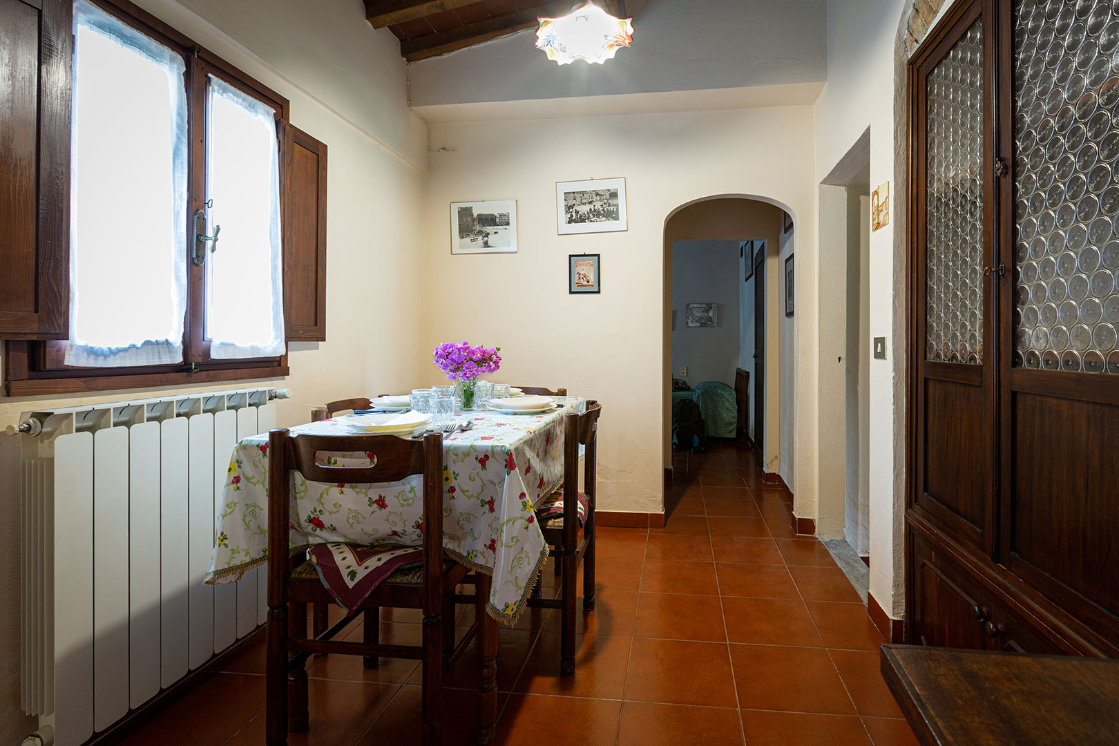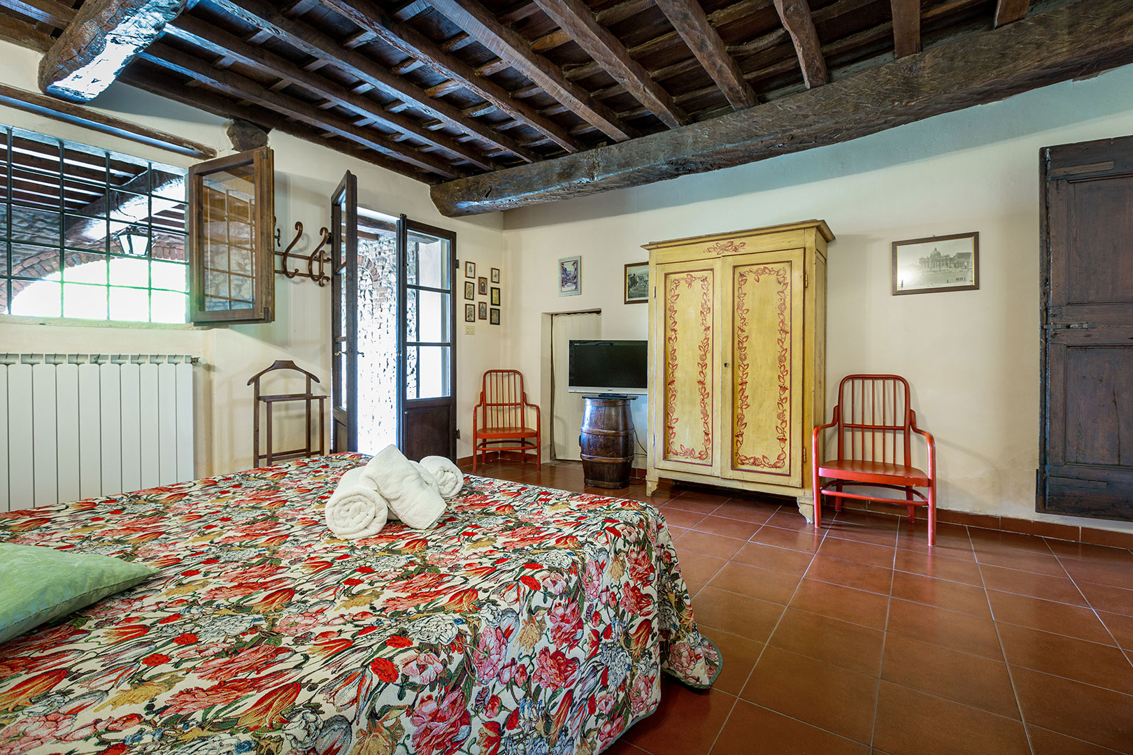 Una casa piccola, adiacente alla cappella privata, semplice e molto accogliente per una vacanza in coppia oppure con un bambino piccolo. La camera matrimoniale con camino da un tocco romantico di altri tempi durante le fresche giornate autunnali. La loggia privata, con le pietre antiche, è uno dei posti privilegiati da graziose famiglie di rondini per i loro nidi in estate.