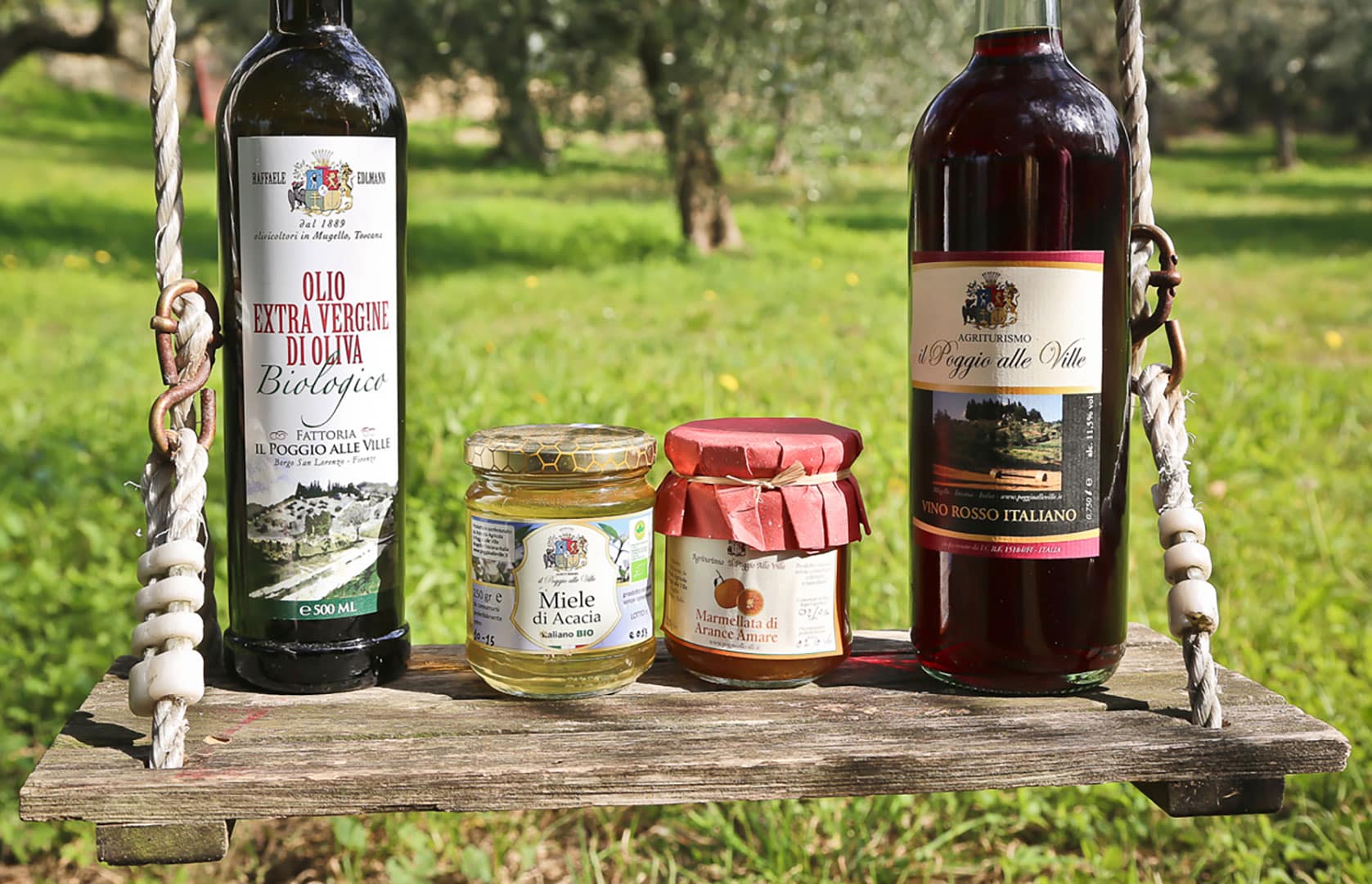 L’oro verde, l’olio extravergine d’oliva, è “il re” dei nostri prodotti. Abbiamo quasi 2.000 olivi, tra proprietà e affitto, la maggior parte dei quali ha oltre 100 anni, tutti curati annualmente con potature mirate. Siamo un “piccolo produttore” e il nostro impegno sta nell’elevata qualità dell’olio extravergine ottenuto dalla prima spremitura con procedimento a freddo in frantoio certificato. Recentemente abbiamo sviluppato il Programma “Adotta un Olivo” mirato a coinvolgere più persone nella cura di un fattoria biologica. Il Programma prevede, per chi lo desidera, la partecipazione alla raccolta delle olive e alla frangitura, due newsletter dedicate all’anno con informazioni particolari, tre bottiglie di 500ml del nostro olio extravergine biologico, un barattolo di marmellata e uno di miele (gusti a scelta in base alla disponibilità stagionale). Il “vostro” olivo accoglierà tra i suoi rami una targa con il Vostro nome per un anno intero. Per ulteriori dettagli e costi, contattateci a raffaele@poggioalleville.it.